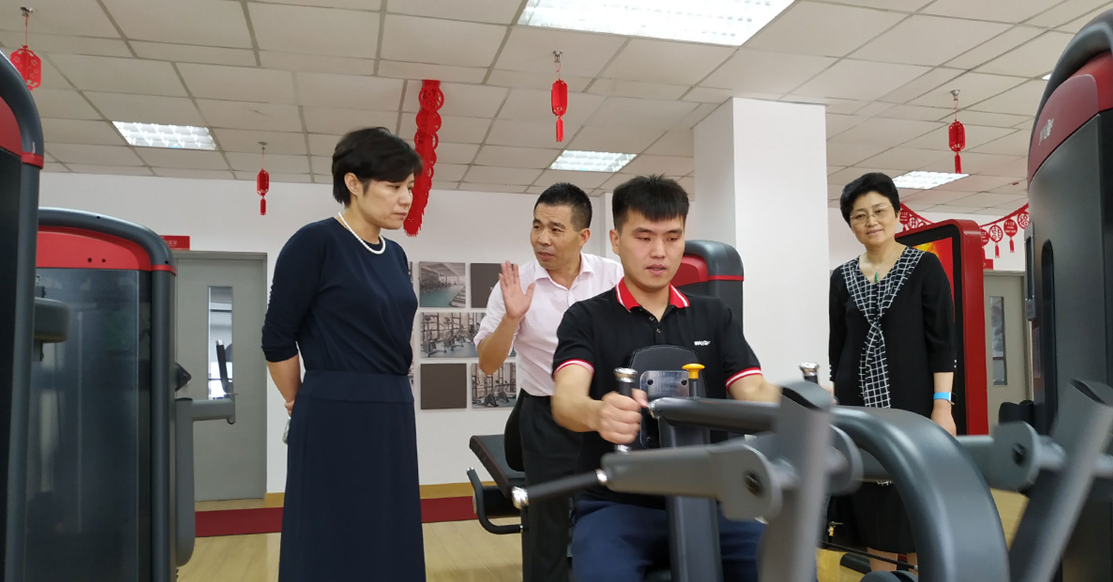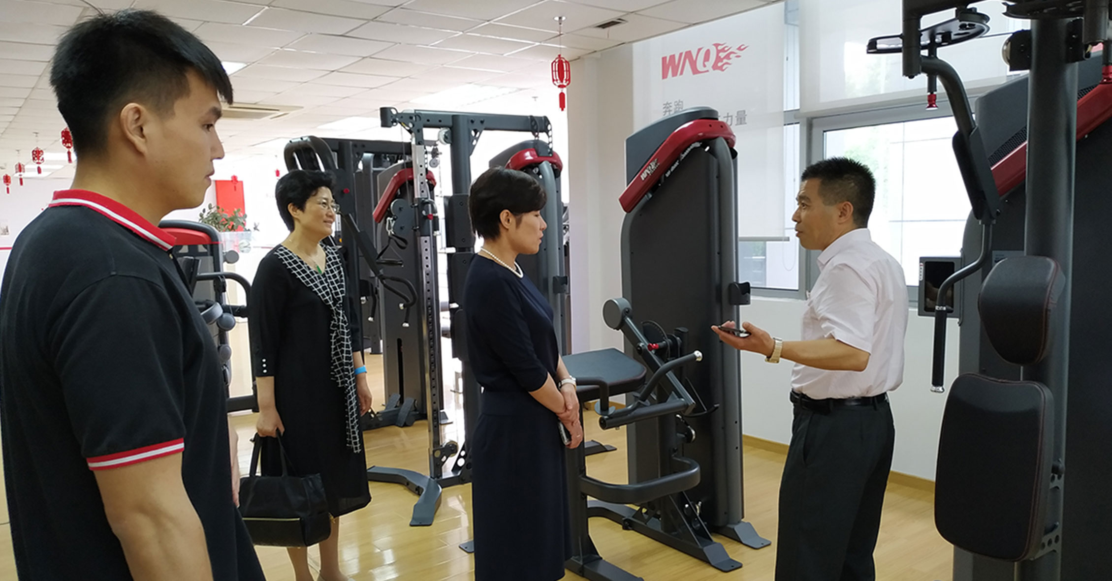 孫部長一行參觀了jiuyou.com展廳,深入了解了公司文化和各類健身器材功能特點,同時體驗了jiuyou.com跑步機、健身車等智能有氧系列新品和美格7000系列和變形金剛力量系列。隨后的會議上,孫部長對我司成立30年來所作出的努力、取得的業(yè)績表示充分肯定,并鼓勵積極應(yīng)對挑戰(zhàn),繼續(xù)增強創(chuàng)新意識和機遇意識,堅持發(fā)展理念,開拓更大市場。